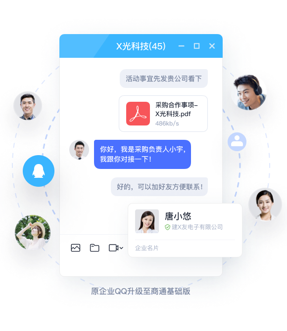 QQ好友可无缝迁移至企点协同,所有联系人均可保留,无需担心因为切换沟通工具而联系人丢失