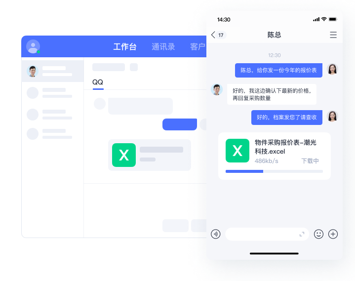 支持加QQ用户为好友,和各类外部联系人进行直接沟通,无论是外部合作伙伴还是客户,均能无缝交流