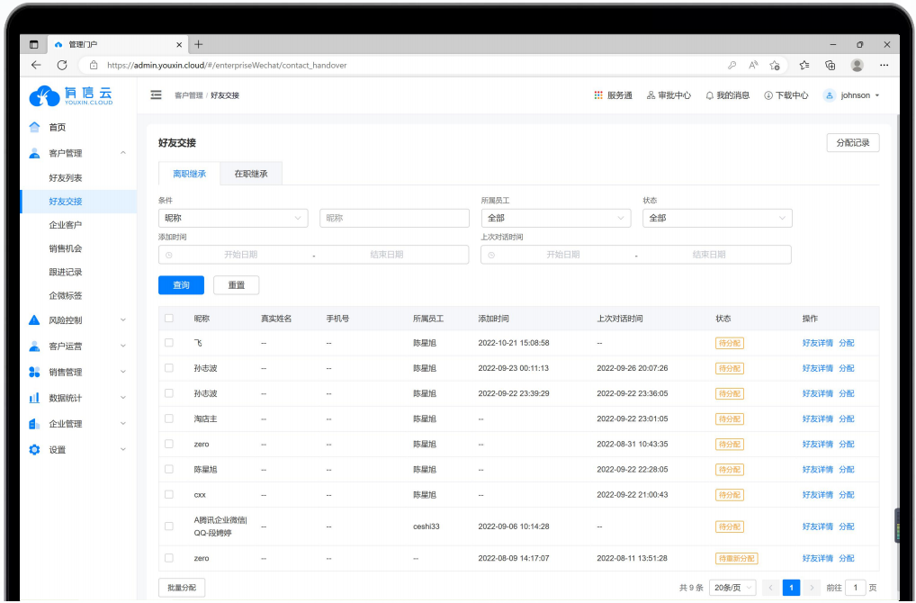 及客户一键交接