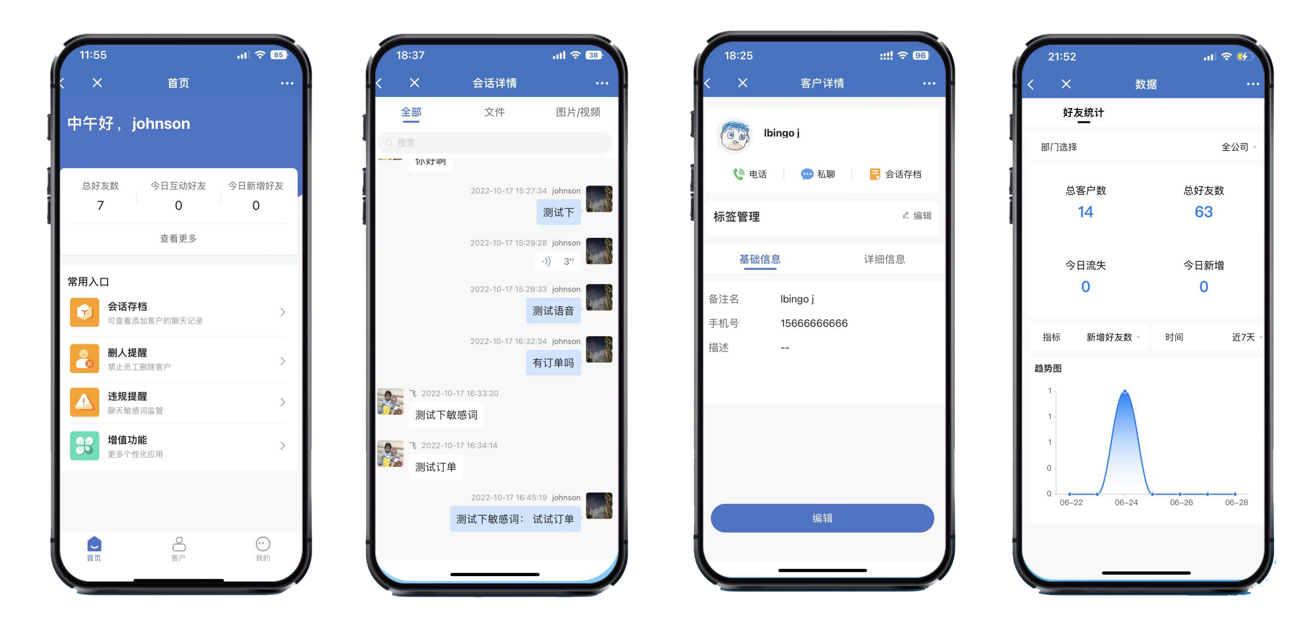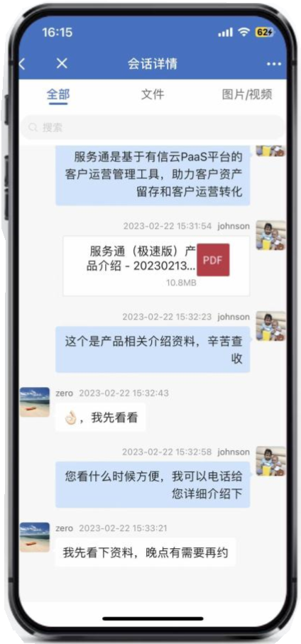 文字、视频、图像、语音条等各种聊天内容实时存档,外部客户、内部员工、单聊、群聊沟通过程完整记录。客户服务有保障!